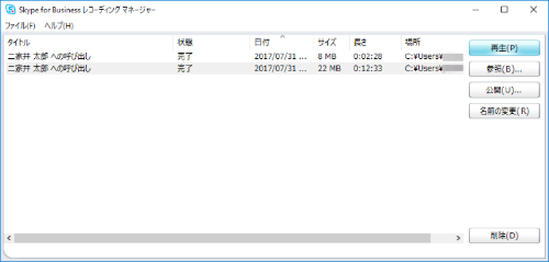 Skype For Business レコーディングと再生